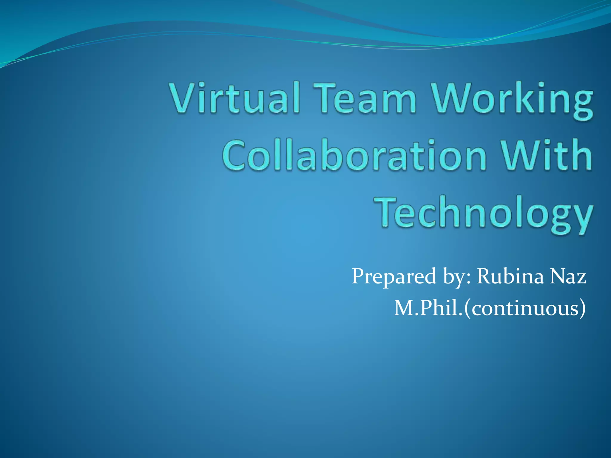 This document discusses teams and virtual teams. It defines a team as a group of people who come together to achieve a common purpose, whether short or long term. It then lists factors for building a productive team such as having clear goals and delegating authority. The document defines a virtual team as relying primarily on electronic communication. It discusses challenges of virtual teams including building cohesion and trust without in-person interaction. Overall, the document provides an overview of teams and virtual teams, their characteristics, tools used, and advantages and disadvantages.