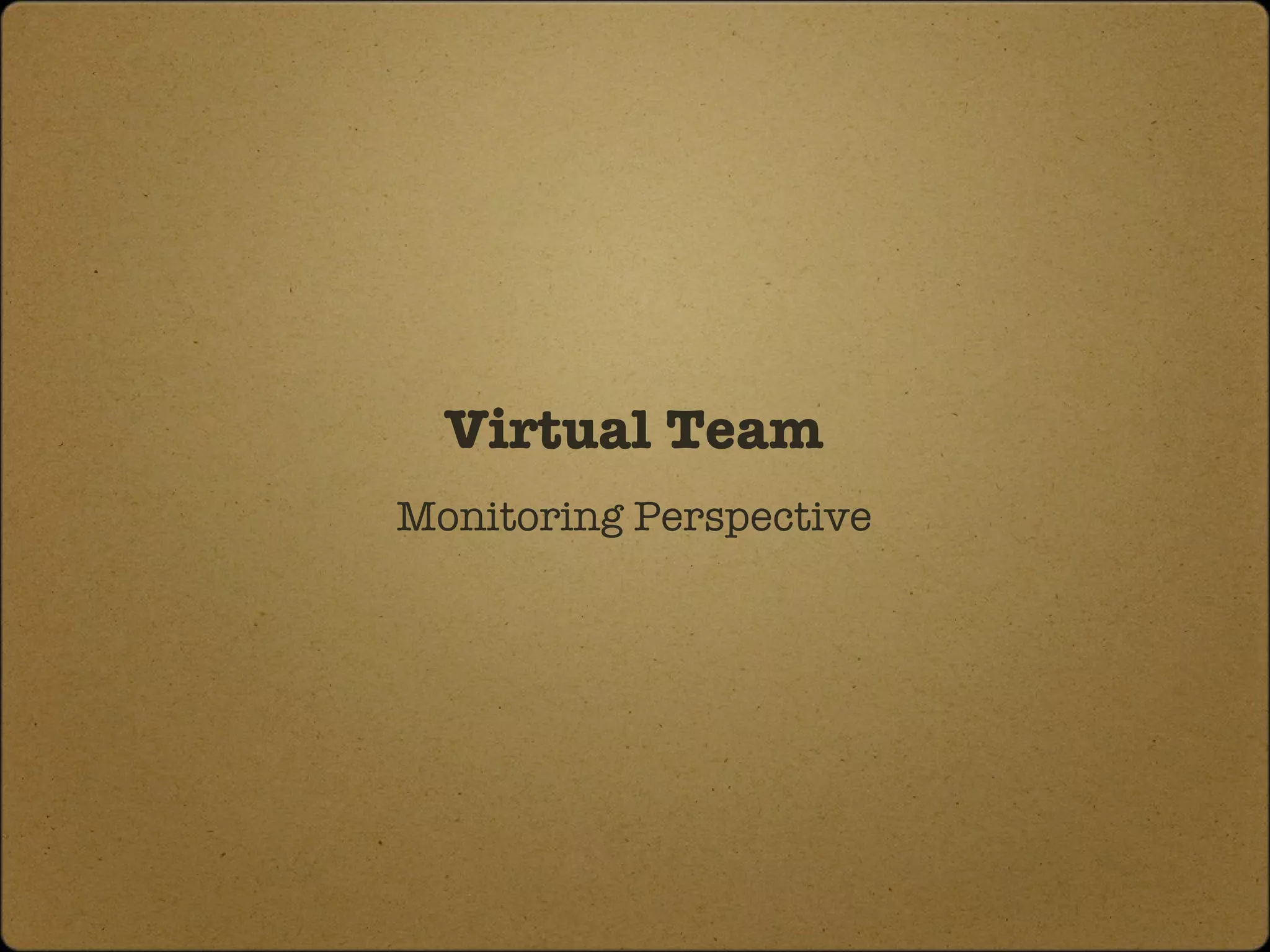 This document discusses monitoring virtual teams and the various aspects involved. It covers virtual team concepts, modes of communication for virtual teams, levels of monitoring from scope to goals and targets, mechanisms for monitoring virtual teams including meetings and reports, and tools that can be used for virtual management. It also addresses stakeholders in virtual teams and explores processes for monitoring virtual work performance.