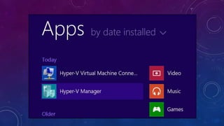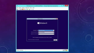 Virtual technology refers to creating virtual versions of computer hardware, operating systems, and other resources. Types of virtualization include server, application, presentation, network, and storage virtualization. Microsoft Hyper-V is a native hypervisor that can create virtual machines on Windows systems. To use Hyper-V, you install it in Windows features, open the Hyper-V Manager, configure networking like virtual switches, and create and install guest operating systems in new virtual machines.