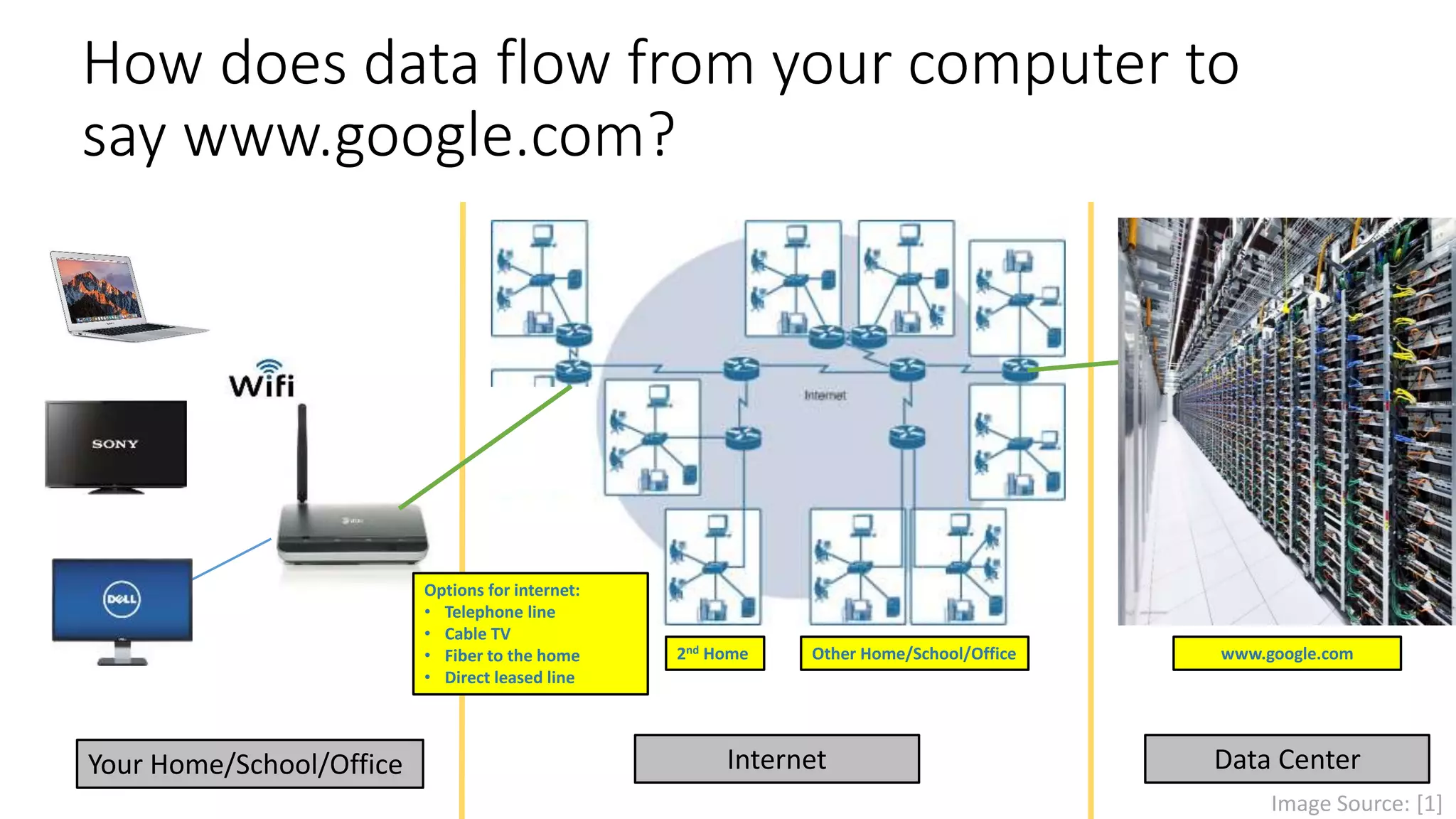 The document discusses how data flows from personal devices to Google, detailing internet connectivity options and the role of data centers in processing this information. It introduces concepts of cloud computing, comparing public and private cloud services, and explains virtualization as it relates to running multiple operating systems on a single server. Additionally, it poses quizzes to engage the reader in understanding the complexity of data center operations and cloud services.