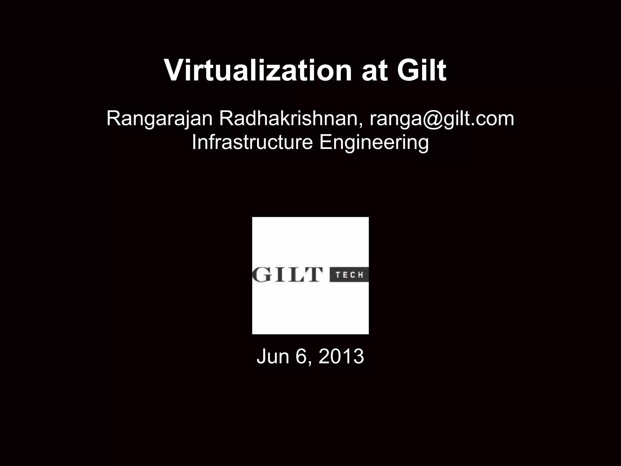 Gilt uses virtualization including Xen VMs, LXC containers, and Apache CloudStack to manage their infrastructure. They migrated to using CentOS and Scala services and now use technologies like PostgreSQL, Solr, Puppet, and RabbitMQ. Their in-house Galactica system integrates with CloudStack to provision and manage LXC containers at Gilt for their application stack, providing benefits like performance and automation. They are currently testing provisioning applications on CentOS and Ubuntu LXC containers to avoid issues with libvirt.