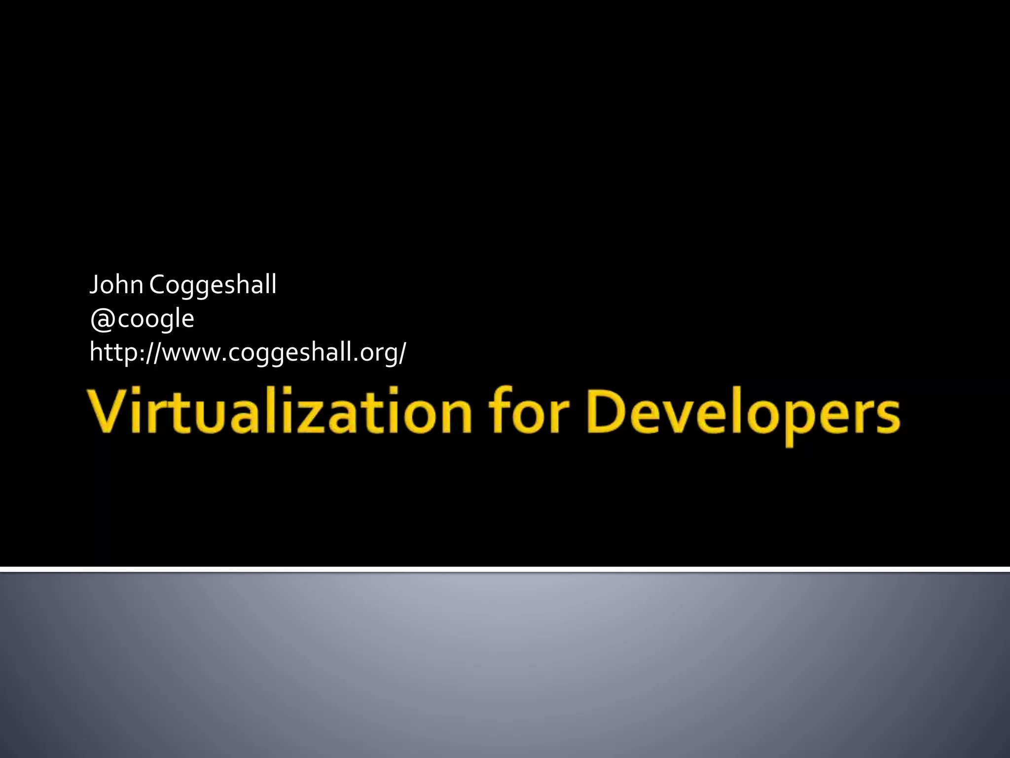 The document discusses using Vagrant and Puppet to create virtual machine environments for development. Vagrant allows defining and provisioning VMs through a Vagrantfile, while Puppet can further configure the VMs by installing software and configuring settings. Benefits include keeping development environments isolated, easy setup for new developers, and ability to deploy VMs to cloud providers like AWS. The key steps are downloading Vagrant and VirtualBox, defining the Vagrantfile, writing Puppet manifests, and running vagrant up to launch and provision the VM.