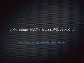 既にバズワードとしては一定の地位を確立した感のあるOpenStackですが、一方で何となく導入を敬遠されている方も少なくないかと思います。