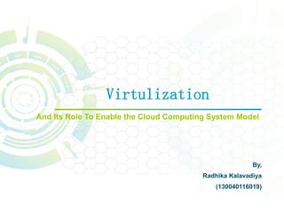 Virtualization is a technology that abstracts computer resources by transforming hardware into software. It allows multiple operating systems to run simultaneously on a single computer as virtual machines. There are different types of virtualization including full virtualization, paravirtualization, and hardware-assisted virtualization. Virtualization enables key aspects of cloud computing like scalability, availability, manageability, and performance by pooling and abstracting hardware resources and allowing virtual machines to be easily provisioned, migrated, and scaled.