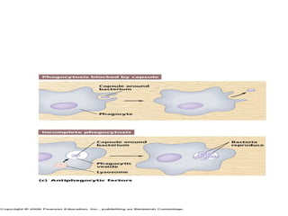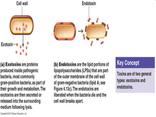 This document discusses bacterial virulence factors. It defines virulence as the ability of an infectious agent to cause disease. Virulence factors help bacteria invade hosts, cause disease, and evade host defenses. These include attachment via adhesins, colonization, invasiveness through toxins/enzymes, and inhibition of phagocytosis. Specific virulence factors that promote these abilities include pili/fimbriae, adhesins, biofilms, hyaluronidase, coagulase, streptokinase, toxins like neurotoxins and enterotoxins, enzymes, and mechanisms to avoid or survive phagocytes.