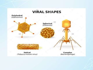 4) It covers virus morphology, classification based on shape, size, nucleic acid, and host range, and the multi-step process of viral replication within host cells.