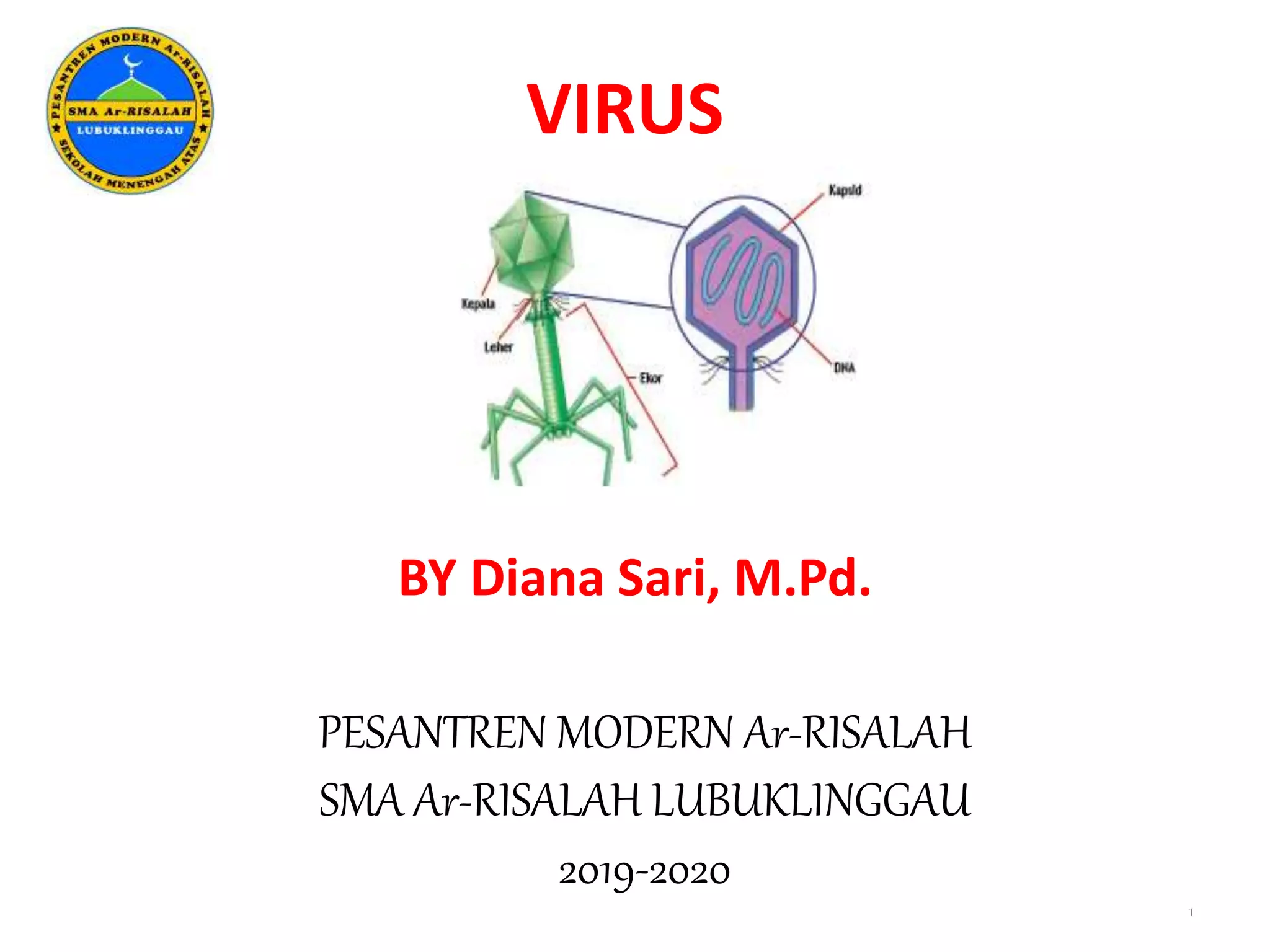 Dokumen ini membahas virus dari berbagai aspek, termasuk pengertian, karakteristik, struktur, dan peran virus dalam kehidupan manusia serta penyakit yang ditimbulkannya. Selain itu, juga dijelaskan metode reproduksi virus melalui siklus litik dan lisogenik, serta pencegahan dan pengobatan infeksi virus. Pembelajaran dirancang untuk siswa agar mampu memahami dan membedakan virus dari makhluk hidup lain serta mengenali dampak positif dan negatif virus.