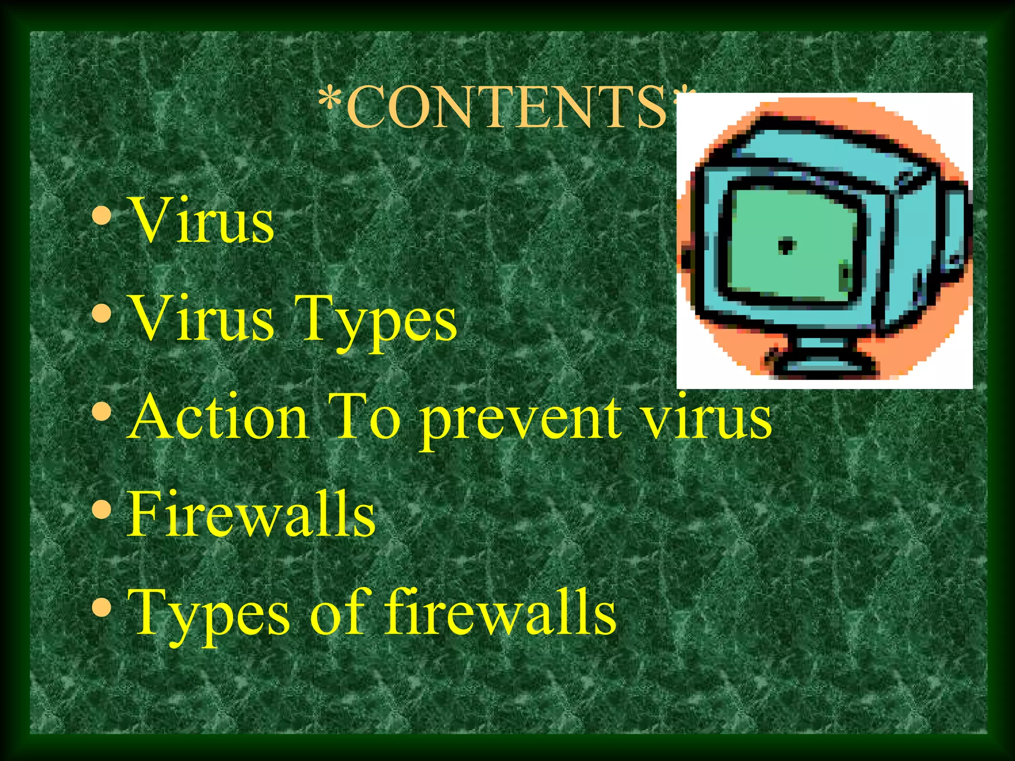 This document provides information about computer viruses and firewalls in 3 paragraphs.
