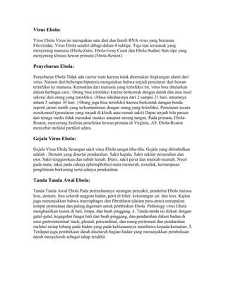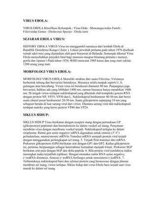 1. Virus Ebola merupakan salah satu dari dua famili virus RNA yang disebut Filoviridae.