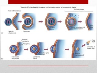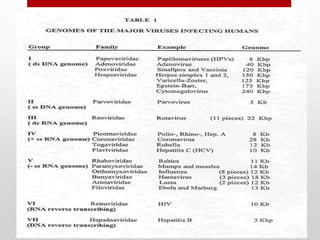 The document discusses viruses, defining them as infectious agents that can only multiply within host cells and consist of nucleic acids and protein coats. It covers virus structure, classification, life cycles, methods of transmission between hosts, discovery, theories of origin, and techniques for studying and cultivating viruses. The document provides an overview of the key aspects of virology, including what viruses are, how they spread and reproduce, approaches to classifying them, and historical developments in the field.
