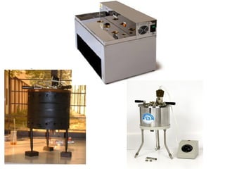 This document discusses different types of viscometers used to measure viscosity. It defines viscosity and explains that viscometers measure it under various flow conditions. The main types described are rotational, vibrational, oscillation, falling piston, falling sphere, and Saybolt viscometers. Rotational viscometers measure viscosity under different conditions for Newtonian and non-Newtonian fluids. Vibrational viscometers continuously measure viscosity in pipes and tanks, while oscillation viscometers adapt laboratory and high-pressure/temperature measurements. Falling piston viscometers use a piston-cylinder assembly to draw fluid through a gap. Falling sphere and Saybolt viscometers also measure viscosity based on fluid flow properties.
