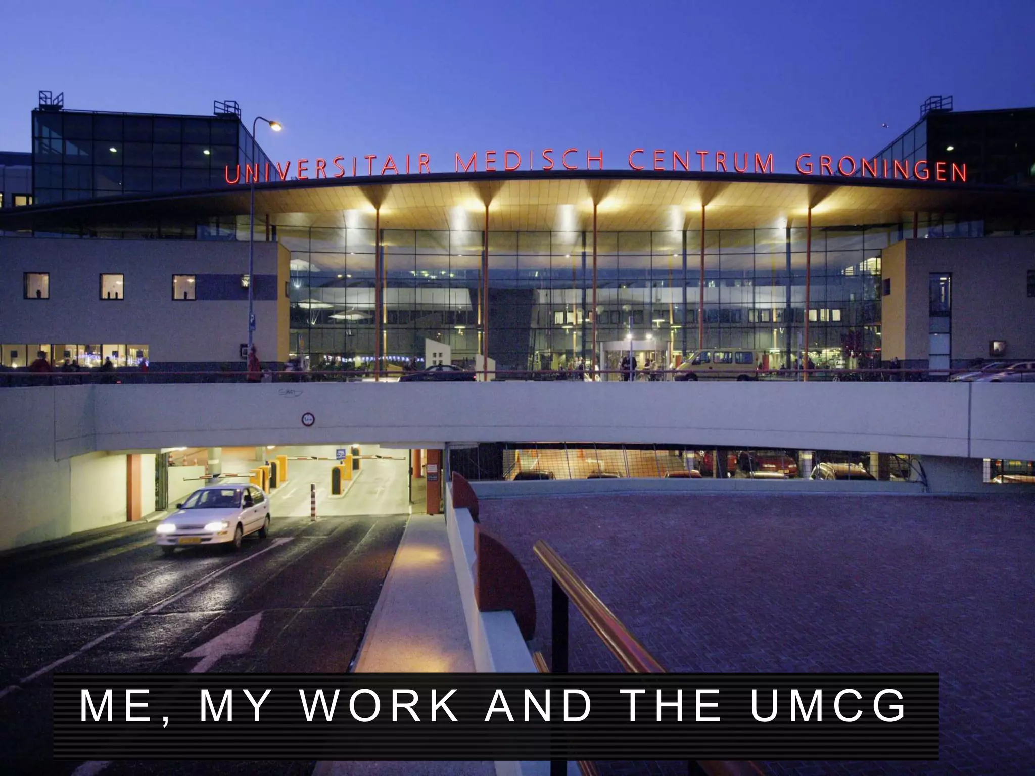 The document outlines a pilot project at UMCG aimed at implementing altmetric data in the hospital to enhance the visibility and societal impact of its research output. It includes plans for a dashboard to track scientific activities, integration with existing research databases, and promotion of alternative metrics for evaluating research impact. Key stakeholders and various departments will collaborate to explore and utilize these metrics effectively.