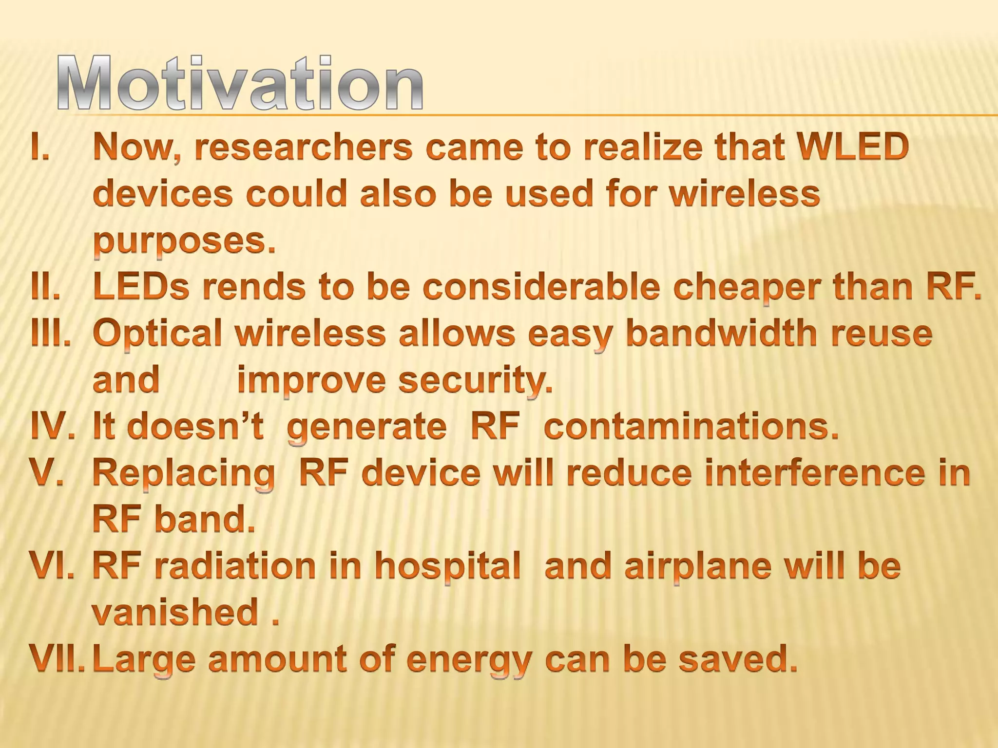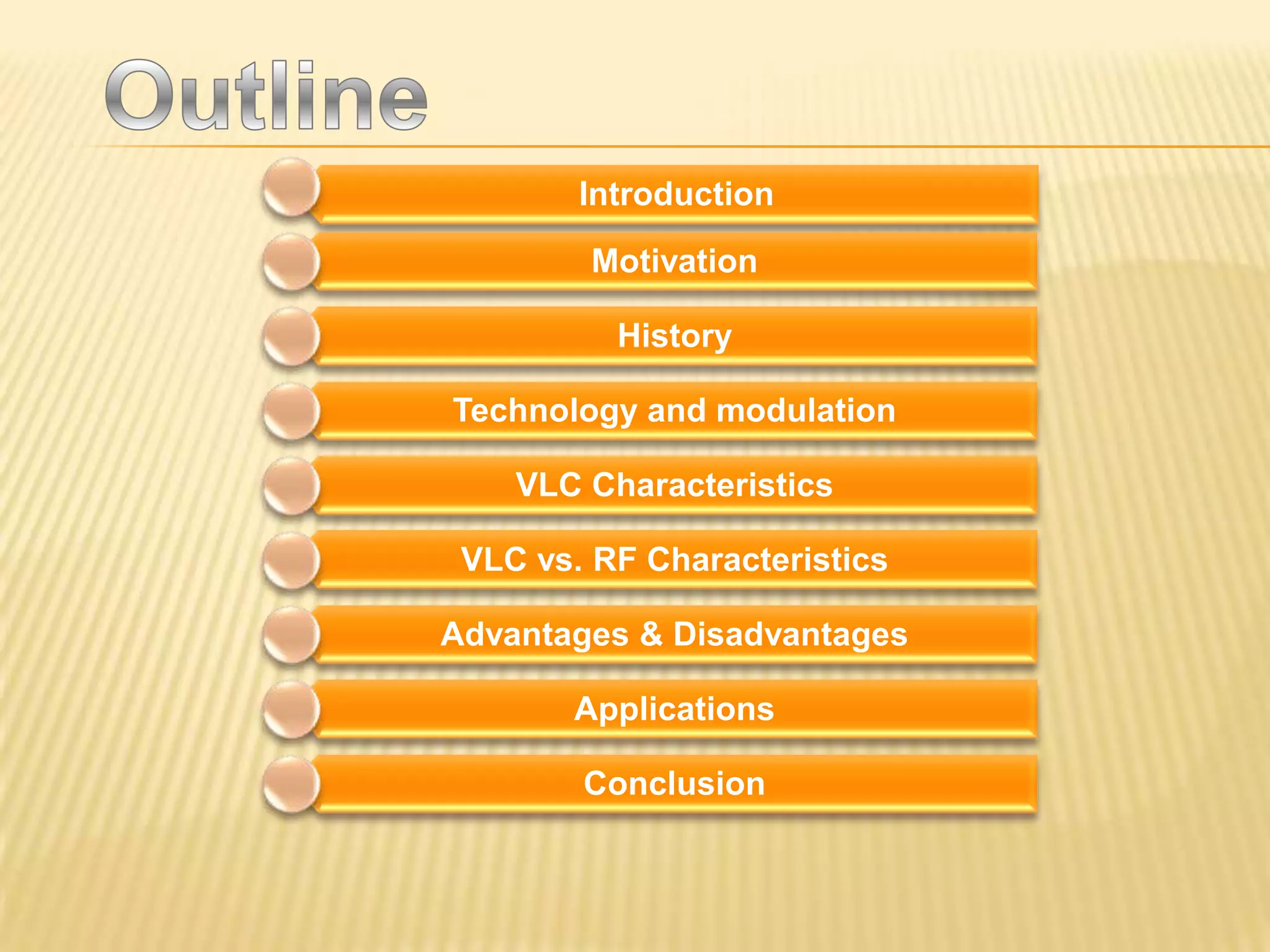 VLC uses visible light communication to transmit data using LED light sources. It has several advantages over traditional RF including unlimited bandwidth potential, no EMI or health hazards, and low power consumption. However, VLC has a much shorter coverage distance than RF. Key applications of VLC include traffic lights that communicate with vehicles, ship-to-ship communication, and indoor lighting that doubles as a communication system.
