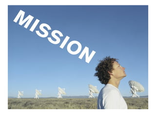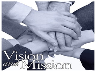 The document discusses the definitions and purposes of vision and mission statements for organizations. A vision statement describes the desired future state and goals of an organization, while a mission statement defines its current functions, customers, and purpose for existing. Having clear vision and mission statements helps focus a team, ensure everyone understands the organization's direction, and provides a framework for strategic planning. The key is crafting inspiring statements that motivate employees while accurately capturing the organization's identity and goals.