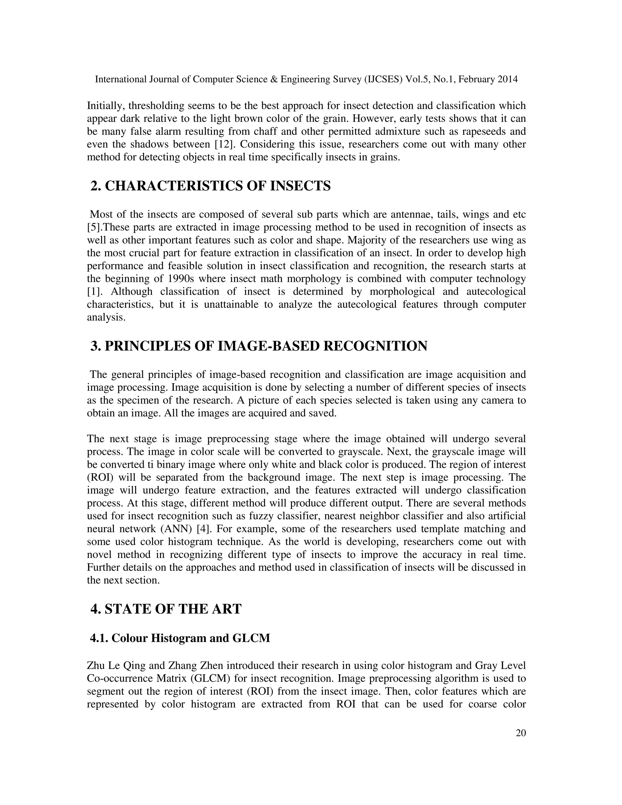 The document reviews the advancements in vision-based insect recognition and classification, emphasizing the need for automated methods due to a lack of skilled entomologists. It discusses various image processing techniques, such as color histograms and edge detection, and highlights the evolution of machine learning approaches used for accurate insect identification. The paper also outlines future research directions and potential applications in agriculture and environmental science.