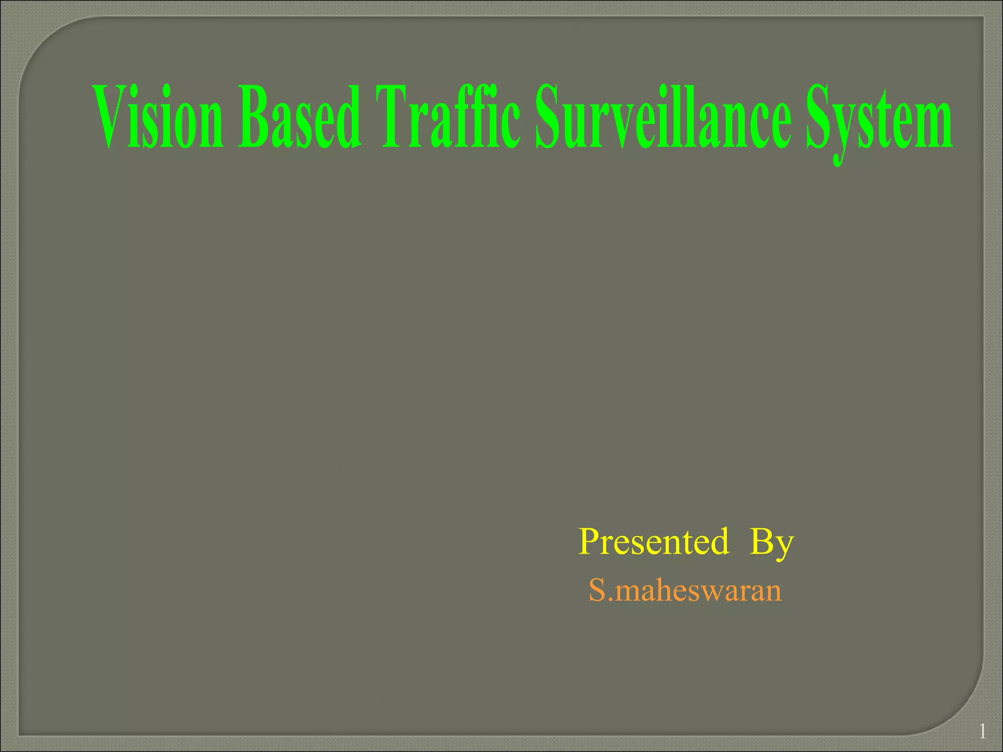 The document presents a vision-based traffic surveillance system that uses digital image processing techniques. The system works to improve image quality by enhancing contrast and removing noise and blurring. It then uses edge detection and morphological processing to segment vehicles. The number of vehicles in each lane is counted and used to determine the time allotted for that lane, with accuracy of 90% compared to existing systems.