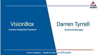 The document discusses the development of affordable vision systems for automated inspection, addressing the barriers faced by SMEs, such as cost perception and understanding benefits. It emphasizes the reliability and efficiency of camera inspection systems with minimal training requirements, highlighting their ability to handle multiple products and reduce labor costs. Ultimately, it advocates for the adoption of vision technology to enhance quality assurance in manufacturing processes.
