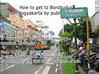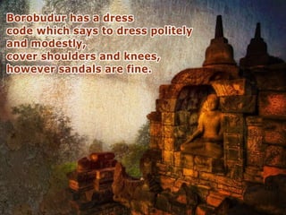 Borobudur, located in central Java, Indonesia, is a 9th-century Buddhist temple complex recognized as a UNESCO World Heritage site and is the world's largest Buddhist site. The monument features three realms of Buddhism and attracts many tourists, with entry fees differing for locals and foreigners. It is recommended to visit during the dry season from April to October, and planning a full day for exploration is advised.