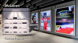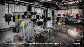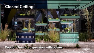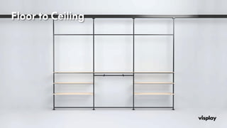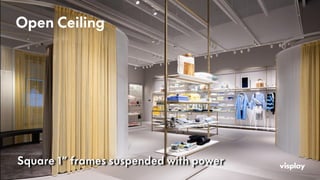 Effective and Innovative display system for interior ceilings. Provides power to display frames supported from the ceiling. Adjustable LED shelves, Hanging Rails, and much more