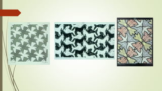 This document provides biographical information about two artists, MC Escher and Vassily Kandinsky. Escher was a Dutch artist born in 1898 who was interested in patterns and rhythm, living in Spain and Italy from 1922-1935 before returning to Holland, where he died in 1972. Kandinsky was a Russian artist born in 1866 who was interested in shapes and lines, moving to Germany in 1896 where he taught at the Bauhaus art school before relocating to France in 1933, where he died in 1944.