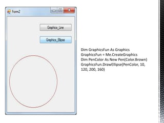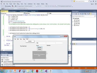 The document discusses Visual Basic code for creating menus and menu items dynamically at runtime. It includes code to: