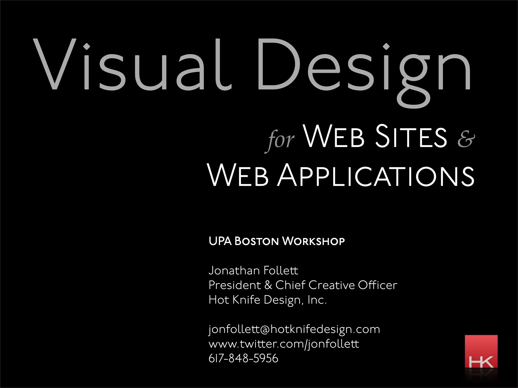 The document summarizes Jonathan Folle's presentation on visual design for web sites and applications. The presentation covered selecting typography like Verdana, Lucida, and Palatino; using grid systems for layout consistency; choosing colors from resources like Kuler; finding icons on sites like Famfamfam; and capturing inspiration through sketching, research, and audio/video. The presentation included tips on typography, grids, colors, and icons to help designers and was intended for practitioners, developers, designers, and project managers.