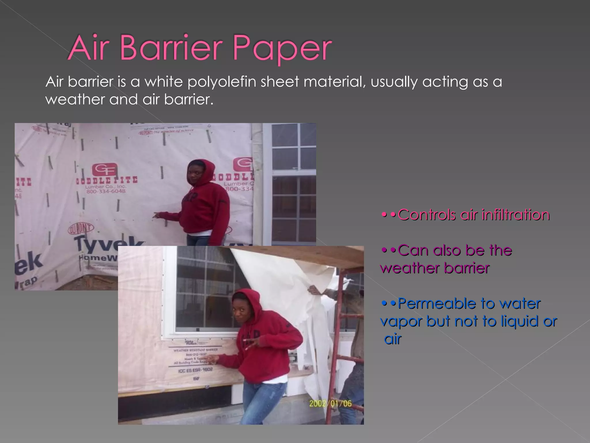 The document discusses various building materials and construction components. It provides information on air barriers, attic ventilation, soffit and ridge vents, backhoes, batter boards, types of arches, bulldozers, cladding, wood shingles and shakes, stairs and window code requirements, concrete joints, concrete masonry units (CMUs), doors, insulation purposes and types, lintels, plywood, rebar, gutters and downspouts, roofing materials and types, roof components, stone masonry, vapor retarders, waterproofing, weep holes, welded wire fabric, and window types.