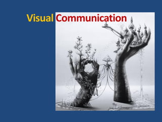 Visual communication uses visual language to communicate through images made up of basic visual elements like dots, lines, shapes, textures and colors. Visual language is one of the most important communication systems because images can convey information to everyone regardless of language or culture. The degree to which an image resembles or represents reality is called its iconicity, which can be high, medium, or low. Highly iconic images are realistic copies, while abstract images have no recognizable connection to reality.