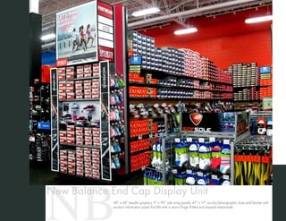 Seaport Graphics provides various visual merchandising and graphic design services including large format printing, cutting, fabrication, and installation of displays, signs, and graphics. They have created header graphics, end caps, wall murals, window graphics, banners, cutouts, and more for retailers like Lululemon, Boston Beer, Casual Male, and New Balance. Their services also include project management, design, printing, finishing, fabrication, and fulfillment of graphics and displays for trade shows, retail environments, and exhibitions.