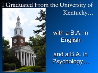 Clay Gibson graduated from the University of Kentucky with B.A. degrees in English and Psychology. He currently works as a graphic designer and web designer for Phoenix Blue Web & Social Media Solutions and as an exam proctor at UK's Disability Resource Center. In his free time, Clay enjoys projects with his band and his top skills include being an activator, being adaptable, being a developer, having openness, being a thinker, and being an organizer. He is interested in working with businesses to help them elevate.