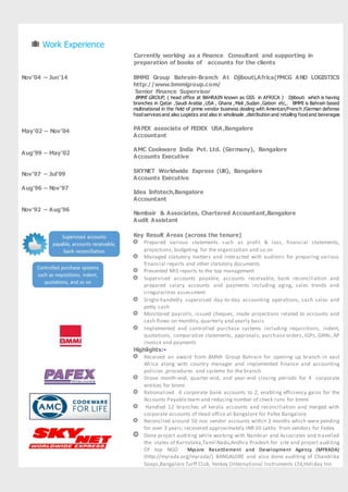 - His career includes roles like Senior Finance Supervisor, Accountant, and Accounts Executive for various companies in India.