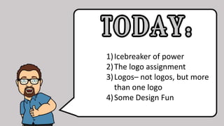 This document provides instructions for a student assignment to design a new logo and uniforms for the Cleveland Browns. It includes details like delivering final assets like the logo in black and white and color versions, an image of a helmet with the logo, uniform sheets in the chosen colors, and short write ups. It also discusses reviewing logo design rules and tips, with an example of 10 rules like making the logo identifiable and question-posing. The document teaches techniques for replicating a poster design and assigns related theoretical readings to review for the next class.