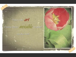Creativity can be ignited through visual stimulation. A website called "Ignite Your Creativity" provides resources to help spark creative thinking using photography. The site is owned by Belinda Witzenhausen and aims to help visitors unleash their creative potential.