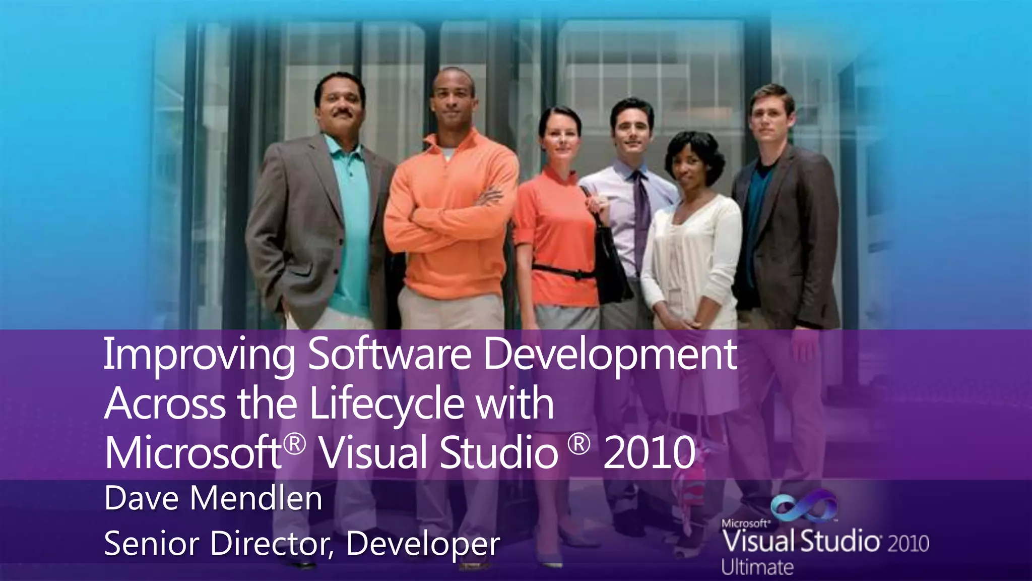 This document discusses how Microsoft Visual Studio 2010 can help improve software development across the lifecycle. It highlights features that help developers understand existing systems through architectural visualization and layer diagrams, eliminate bugs using IntelliTrace for debugging, and streamline processes with improved agile support, reporting, and SharePoint dashboards for increased visibility and risk reduction. A Q&A section is included at the end.