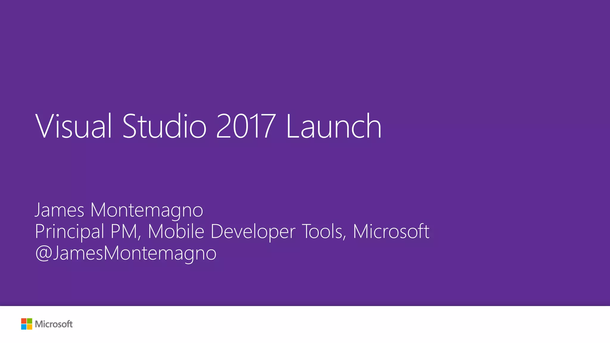 The document highlights the announcement of Visual Studio 2017 and its features, emphasizing improvements in mobile development and DevOps practices. It discusses the integration of Xamarin into Visual Studio for creating native mobile applications across multiple platforms using C#. Key points include the promotion of continuous integration, productivity enhancements, and the supportive ecosystem for developers, along with resources available through Microsoft and its partners.