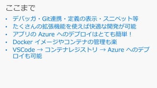 コンテナ開発やクラウド連携も簡単 • 遠隔ペアプロもできる • 機械学習も VSCode で!