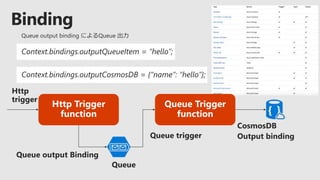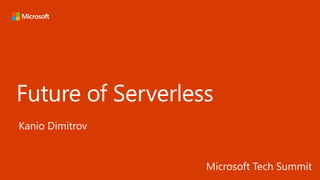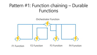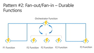 The document discusses serverless computing on Microsoft Azure using Visual Studio Team Services for continuous delivery. It covers using Azure Functions with Durable Functions for orchestrating long-running workflows. Key points include how Durable Functions allow writing stateful functions in a serverless manner, handling parallelism, and coordinating functions through an orchestrator. Code examples demonstrate calling functions sequentially or in parallel under the orchestrator's control. The document also mentions other Azure services like Logic Apps and recommends resources for learning more about serverless on Azure.