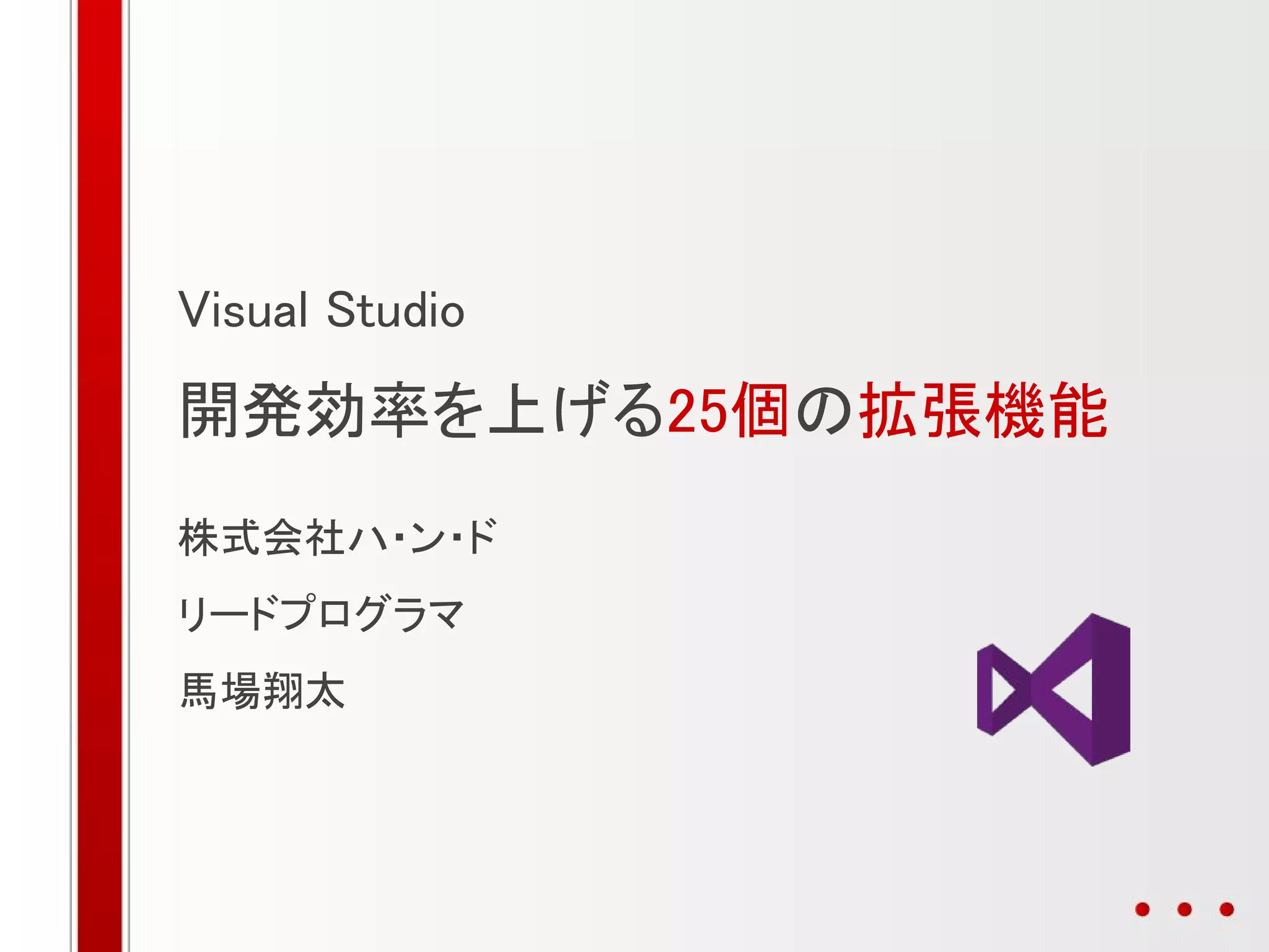 Visual Studioにおける開発効率を上げる25個の拡張機能の紹介です