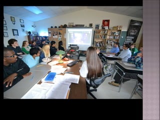 The document discusses the importance of using art and visuals in the classroom to engage students actively in learning. It describes a method known as Visual Thinking Strategies (VTS) that encourages observation, discussion, and clarification to enhance understanding without passive receipt of information. The goal is to foster student engagement and diverse viewpoints through structured visual exploration and discussion.