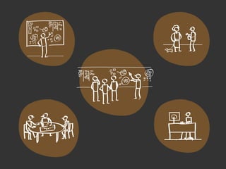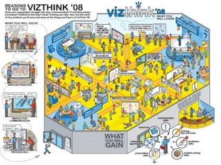 The document presents a workshop on applying visual thinking (VT) to service design (SD), emphasizing the importance of user-centered and co-creative approaches in developing services. It details various techniques and principles of visual thinking, including the use of sketches, rich pictures, and service blueprints to illustrate complex service experiences and interactions. The workshop encourages participants to understand the user journey, visualize ideas, and design service propositions that address community needs.