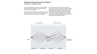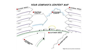 The document discusses the importance of visual thinking and drawing in communication, problem-solving, and understanding complex concepts. It introduces various methods like mind maps, visual models, and concept models for effectively conveying information and ideas. Additionally, it emphasizes the iterative nature of creating visual representations and the role of mental models in shaping understanding and behavior.