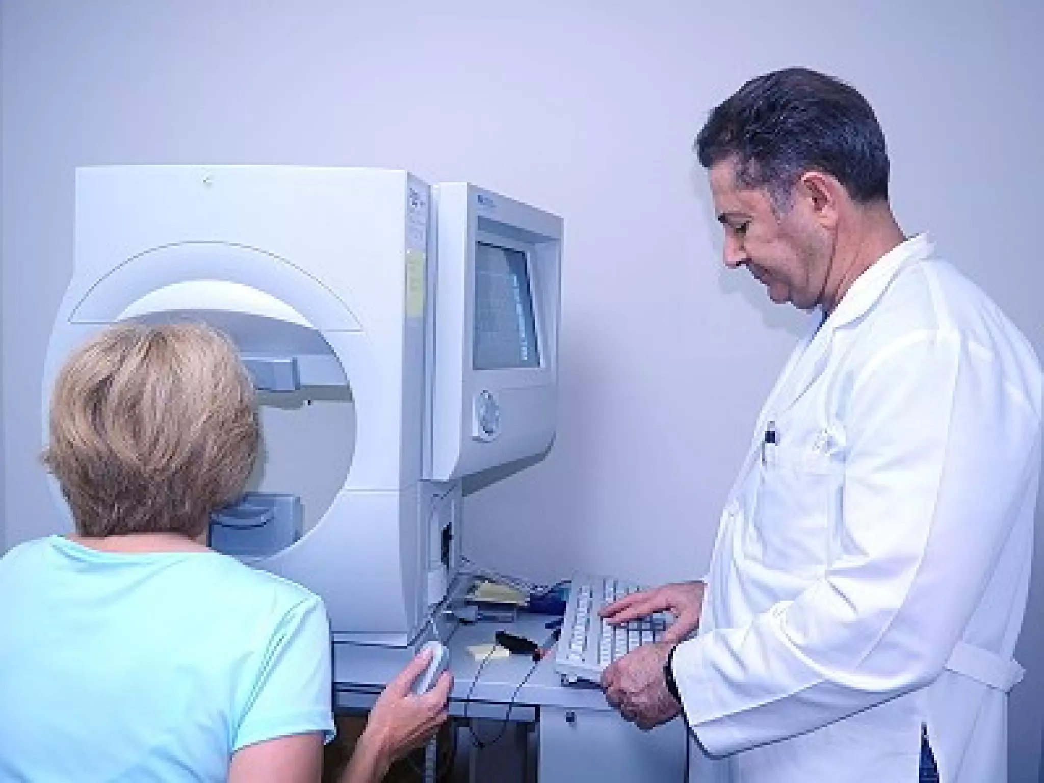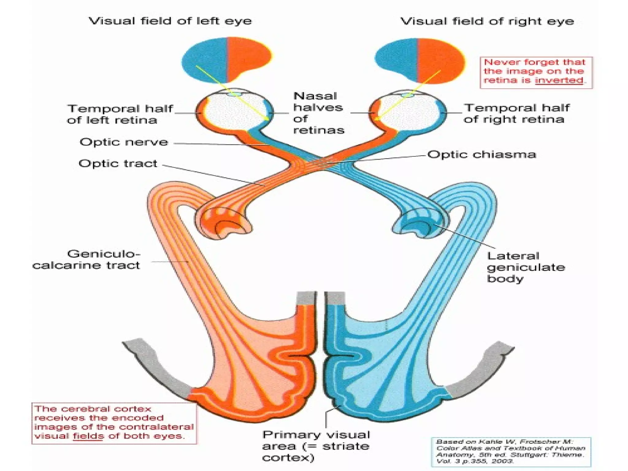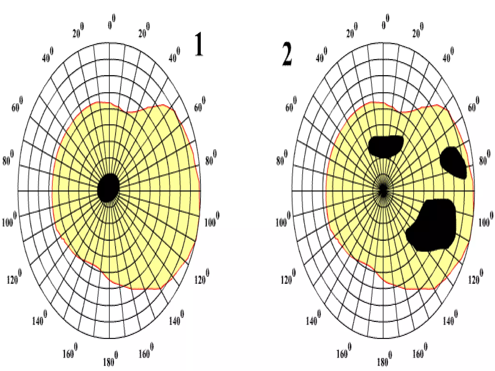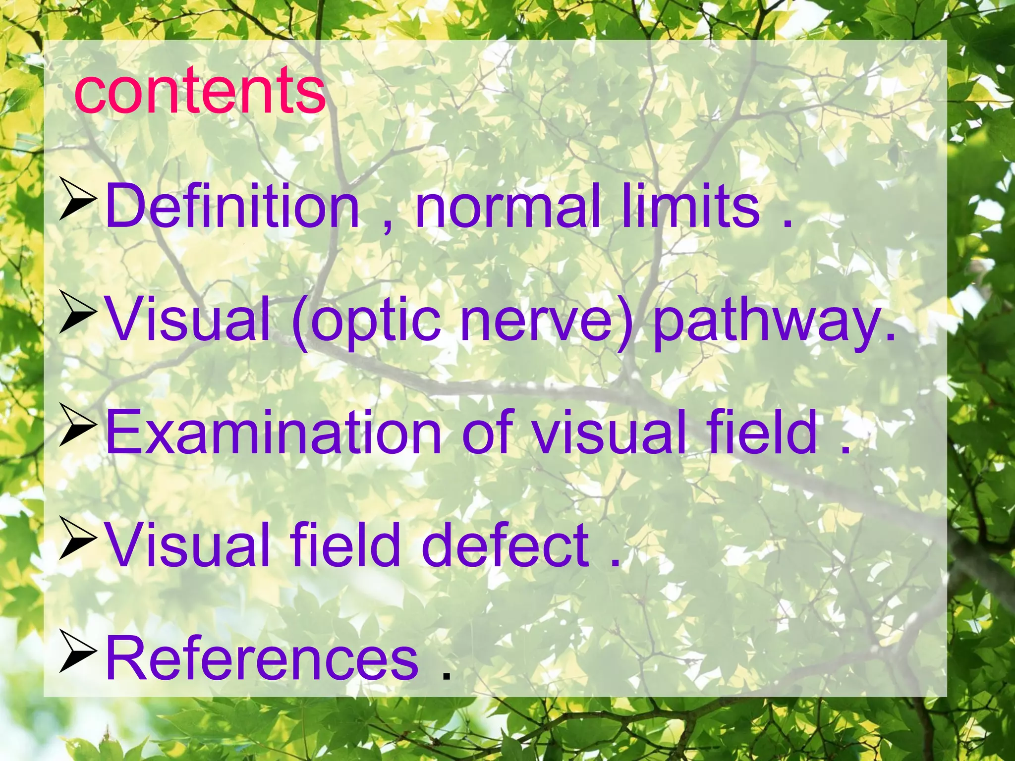 This document defines the visual field and describes how it is examined. The visual field refers to the total area visible to both eyes without moving the head or eyes. It is normally largest temporally and superiorly. The visual pathway involves the optic nerves transmitting signals from the retina to the brain. Common examination techniques include confrontation testing to check the peripheral field and Amsler grid for the central field. Static and kinetic perimetry provide quantitative assessments and can detect defects from various conditions. Visual field defects include scotomas and hemianopias that present as missing areas of the field.