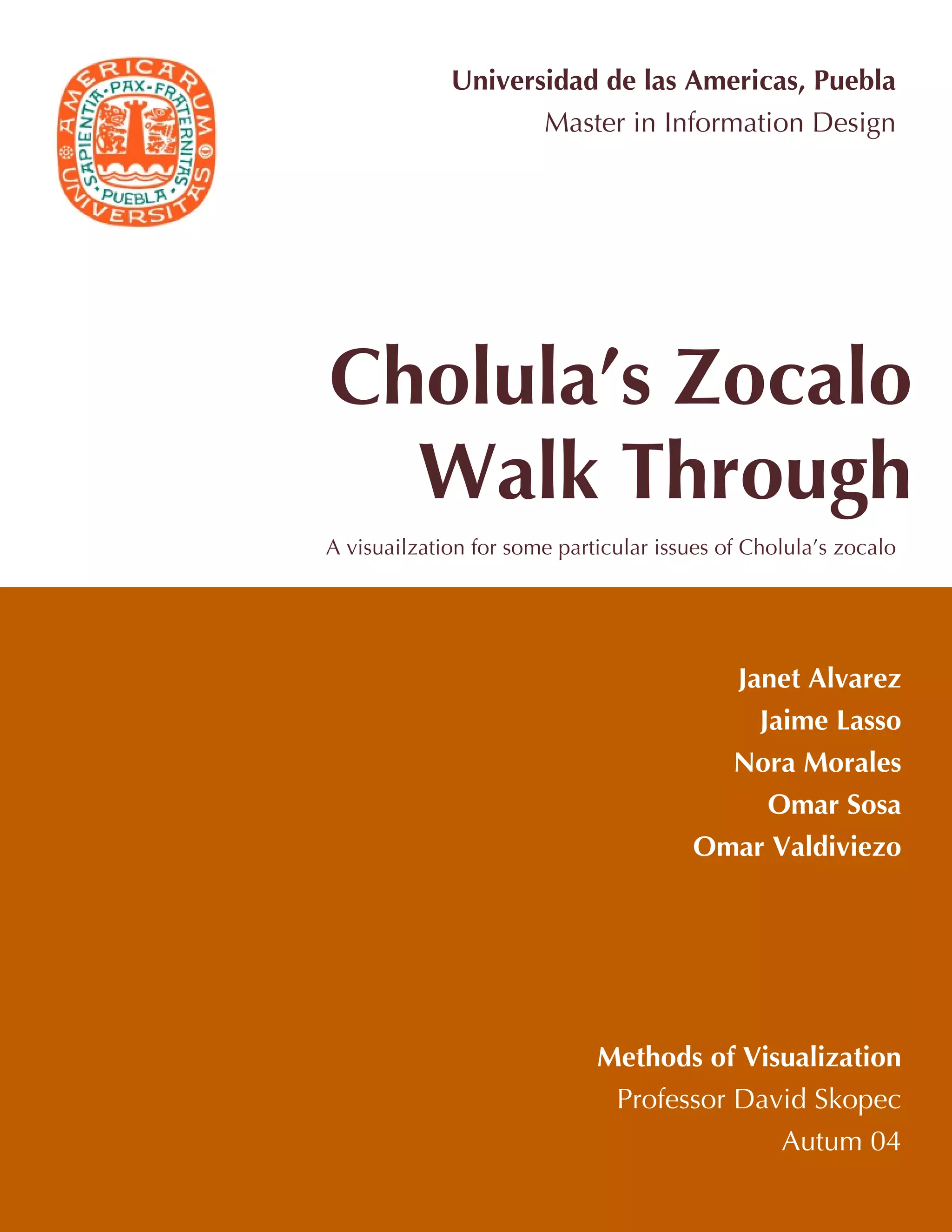 This document summarizes a project analyzing data about Cholula's central square, or zocalo. It was conducted by students in Mexico over two weeks. They collected data on the zocalo's history, activities, functions, and orientation. The zocalo has been an important meeting place since 200 AD. Over time, the Spanish modified it with new buildings. Its importance gave rise to Cholula's social structure. The zocalo remains central to community life through events and as a gathering place.