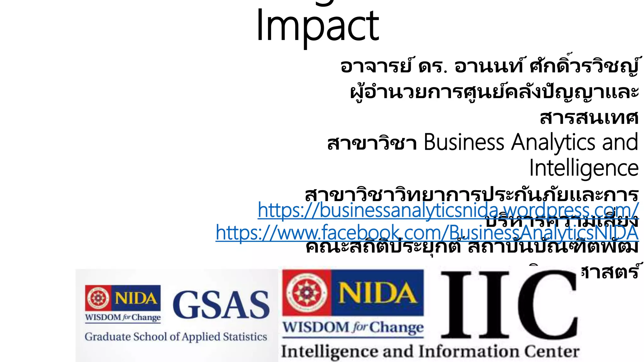 Visualizing for real impact โดยอาจารย์ ดร. อานนท์ ศักดิ์วรวิชญ์ ผู้อำนวยการศูนย์คลังปัญญาและสารสนเทศ สถาบันบัณฑิตพัฒนบริหารศาสตร์ สาขาวิชา Business Analytics and Intelligence และสาขาวิทยาการประกันภัยและการบริหารความเสี่ยง สถาบันบัณฑิตพัฒนบริหารศาสตร์ บรรยายในงาน The 4th Data Cube Conference (Data Analytic to Real Application) เมื่อวันที่ clock