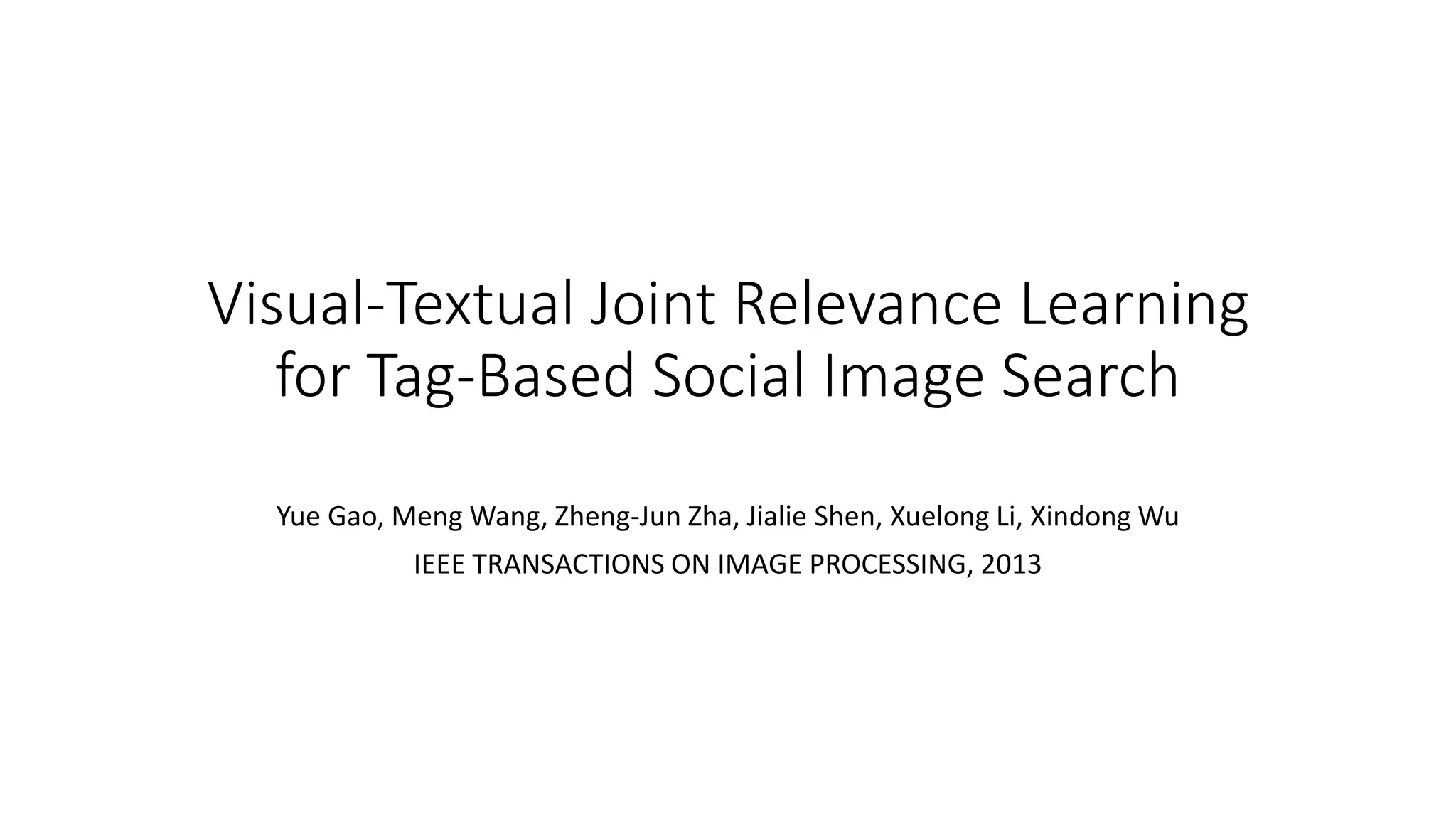 The document presents a hypergraph-based approach for improving tag-based social image search by jointly leveraging visual content and textual tags, addressing the limitations of conventional methods that treat these elements separately. It details the construction of hypergraphs to represent social images, the learning of relevance scores through binary classification, and optimization techniques used for this purpose. Experimental results demonstrate the proposed method's superiority over existing algorithms in accurately ranking images based on relevance to user queries.