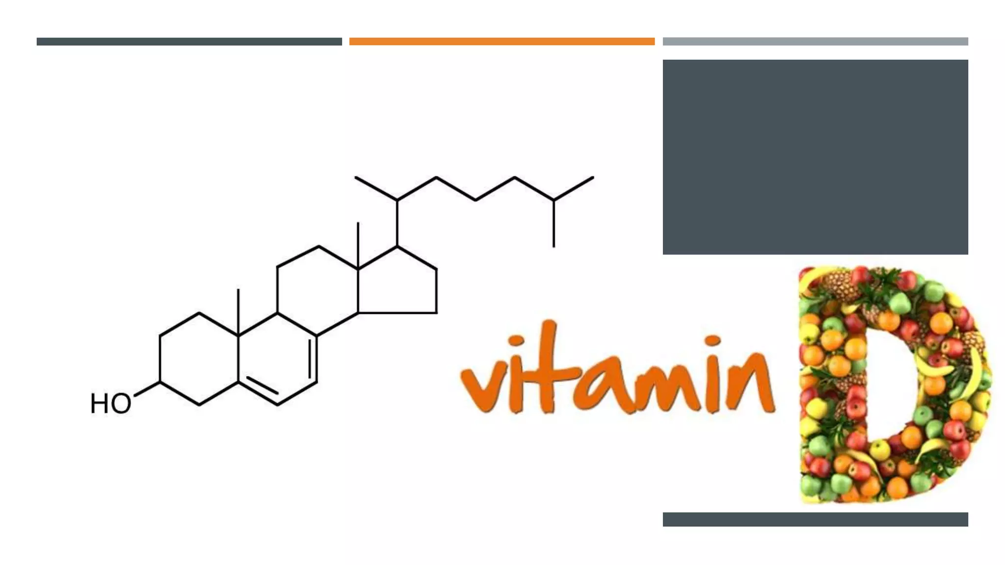 This document discusses vitamin D, including its types, metabolism, absorption, storage, functions, requirements, sources, deficiency, and toxicity. The two major forms are vitamins D2 and D3. Vitamin D is absorbed in the small intestine and transported to the liver and kidney where it is converted to its active form, 1,25-dihydroxyvitamin D. This active form regulates calcium and phosphorus absorption in the intestine and their deposition in bone. Requirements vary by species but adequate sunlight can meet animal requirements. Deficiency causes rickets in young animals due to poor bone mineralization.