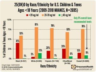 This chart shows the relationship between vitamin D levels and peak flu season months. It displays data from the CDC on the average peak month of flu activity each year from 1982-1983 to 2017-2018, with most years peaking between December and March. It also shows average vitamin D levels by month, with the lowest levels (less than 15 ng/ml) occurring between January and March, and levels below 20 ng/ml spanning October through June. The chart suggests that vitamin D deficiency, as indicated by levels below 20 ng/ml, may be associated with increased flu activity and the typical winter peak of the flu season.