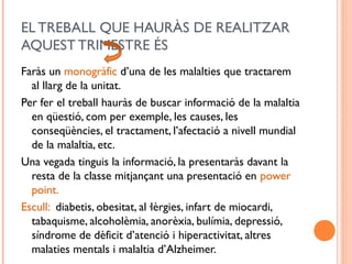 Per fer el treball hauràs de buscar informació de la malaltia