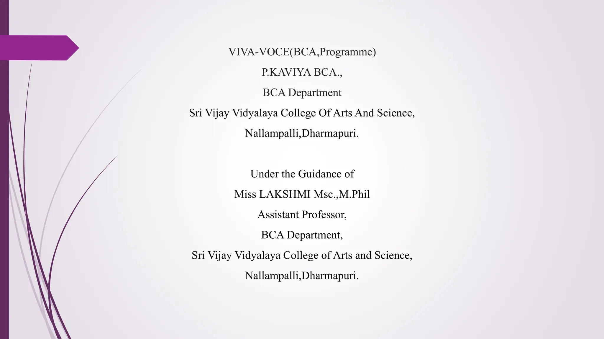 This document is a thesis proposal for a BCA student named P. Kaviya studying under the guidance of Miss Lakhsmi. The proposed area of research is Python. The thesis aims to build a toolkit for detecting and cropping the main body from pictures and supporting face and saliency detection. Currently, the approach of using (x,y) coordinates is not very robust since the boxes could be anywhere on the image. The document provides background papers on similar topics and the system specifications required to implement the proposed system in Python.