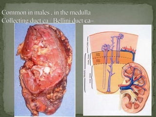 The document provides guidance on the proper dissection and examination techniques for various organs during an autopsy. It describes how to remove and examine the male and female reproductive systems, kidneys, bladder, prostate, testes, and other organs. Details are given on identifying congenital anomalies, diseases, infections and tumors that may be seen. Common findings for conditions like tuberculosis, infections, cancers, cysts and other pathologies are outlined. The document emphasizes thorough examination and documentation of pathological findings in organs.